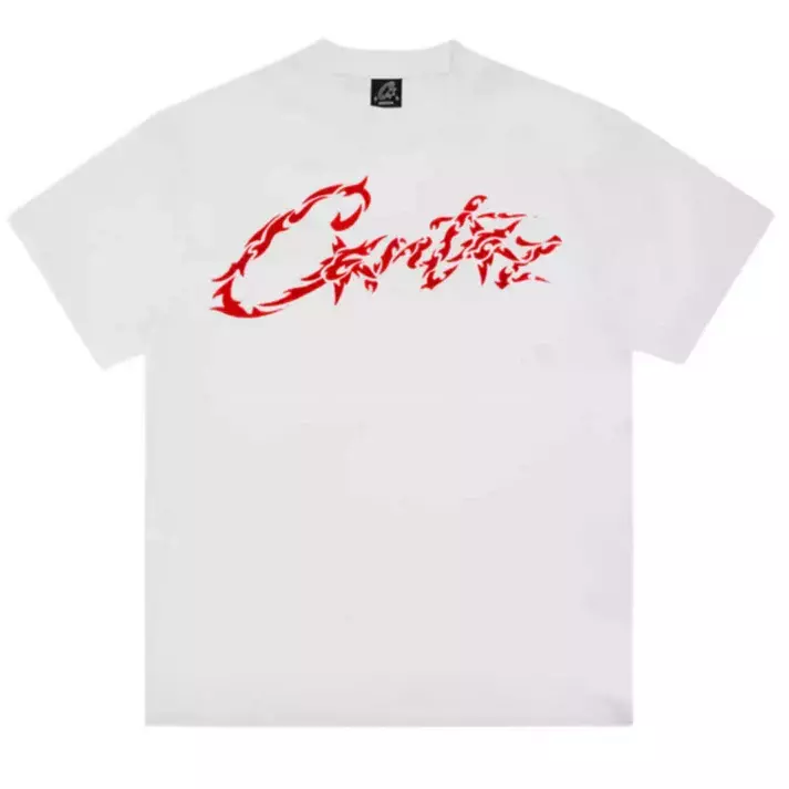 La camiseta que combina actitud y exclusividad. La Allstarz Red Flames Tee de Corteiz presenta un diseño vibrante con tipografía flameada en rojo que destaca sobre el fondo blanco, reflejando el espíritu rebelde de la marca londinense.